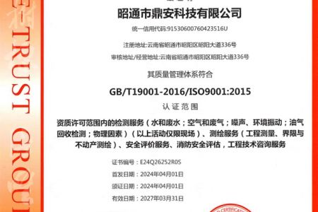 2003年11月10日,昭通市鼎安科技有限公司成立,初始主要從事第三方安全工程技術(shù)服務(wù),經(jīng)多年運營,發(fā)展為多專業(yè)綜合科技平臺,為社會提供多種專業(yè)技術(shù)服務(wù)工作。 現(xiàn)公司注冊資金為1200萬元,公司法定代表人:毛衛(wèi)旭。公司主要業(yè)務(wù):安全評價、安全標(biāo)準(zhǔn)化評審、安全工程技術(shù)服務(wù);環(huán)境監(jiān)測、職業(yè)衛(wèi)生檢測、檢驗;法律訴訟及非訴訟服務(wù);司法鑒定、固定資產(chǎn)投資項目節(jié)能服務(wù);工程咨詢;工程測量測繪;安全教育培訓(xùn)等。是安全生產(chǎn)服務(wù)、安全教育培訓(xùn)機構(gòu),也是環(huán)境監(jiān)測和職業(yè)衛(wèi)生服務(wù)機構(gòu),同時也是綜合的檢測檢驗、綜合科技平臺服務(wù)機構(gòu)。多年來為公、檢、法、司、軍、警、海關(guān)、仲裁、安監(jiān)、工礦商貿(mào)企業(yè)、社會團體及個人提供多專業(yè)技術(shù)服務(wù)。